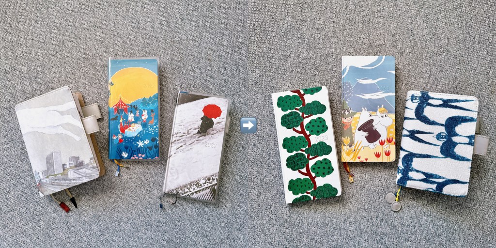 23年的手帐本也终于都收到了,今年坚持每天都写的班底也有三本:一本每年定番的姆明限定hobo weeks写tracker书影音记录,一本树weeks写每日日程,还有mina一本一日一页A6写写日记每日心情。写手帐那么多年下来本子越买越多,不过写到现在可以随心所欲写了,不再容易受到社交媒体上其他手帐博主的影响。今年也请多多指教啦我的本子们。
