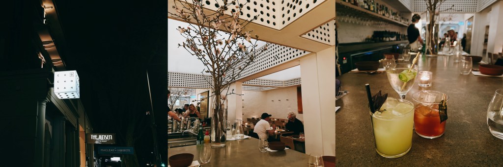 今晚继续吃!很有名的一家fusion izakaya,进店先被环境美到:空间比起传统居酒屋大了不少,光线昏暗质有质感又有情调,桌上一瓶花枝在冬日里也有了春意,吧台的调酒师小哥很帅,店员都青春靓丽又服务热情。