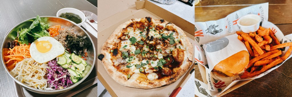 中间的bbq duck pizza是macchiato woodfire pizza的special menu,友来悉尼朋友带去吃,我因为上周刚去吃过就没一起。结果她们吃到一半发来消息说今天这个pizza有多好吃给我留了两片当夜宵,过了又一会儿说太好吃了没忍住吃完了,这得有多好吃呀!于是在我千求万求下美女们又点了一份带回来给我当夜宵,一吃是真的好吃——就黄瓜香菜北京烤鸭甜面酱披萨怎么可能不好吃嘛!