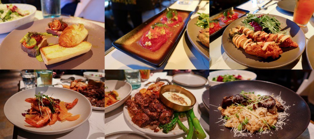 晚饭和友探索新饭馆,这家看了眼菜单应该是意大利餐厅,属于友一直想来但一个人吃不了,于是这次赶上和我一起就来吃了。不知道点什么好两人干脆点了69pp的tasting menu两杯mocktail,all plates sharing没想到三道starter三道主食一道side一道dessert把我们吃到撑死还有的打包带回家……