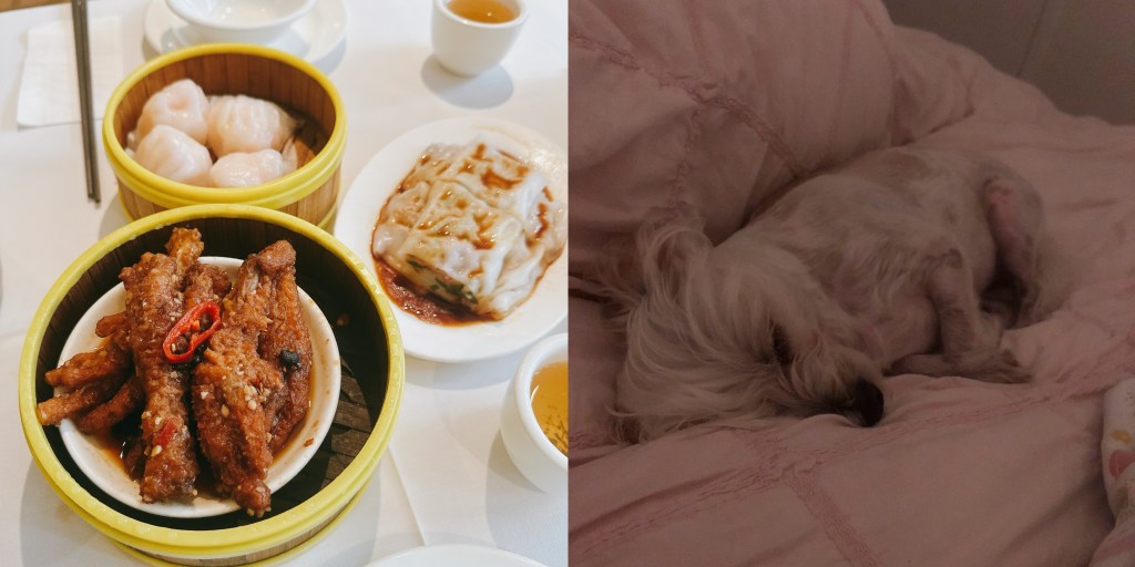 看之前还和朋友一起去吃早茶,看完去朋友家睡打游戏。朋友的小狗实在太粘人了扒着我的头就是一阵狂舔,硬是把我这么一个对动物只敢远观不敢上手的人逼得练出阻止狗子的一双铁手。