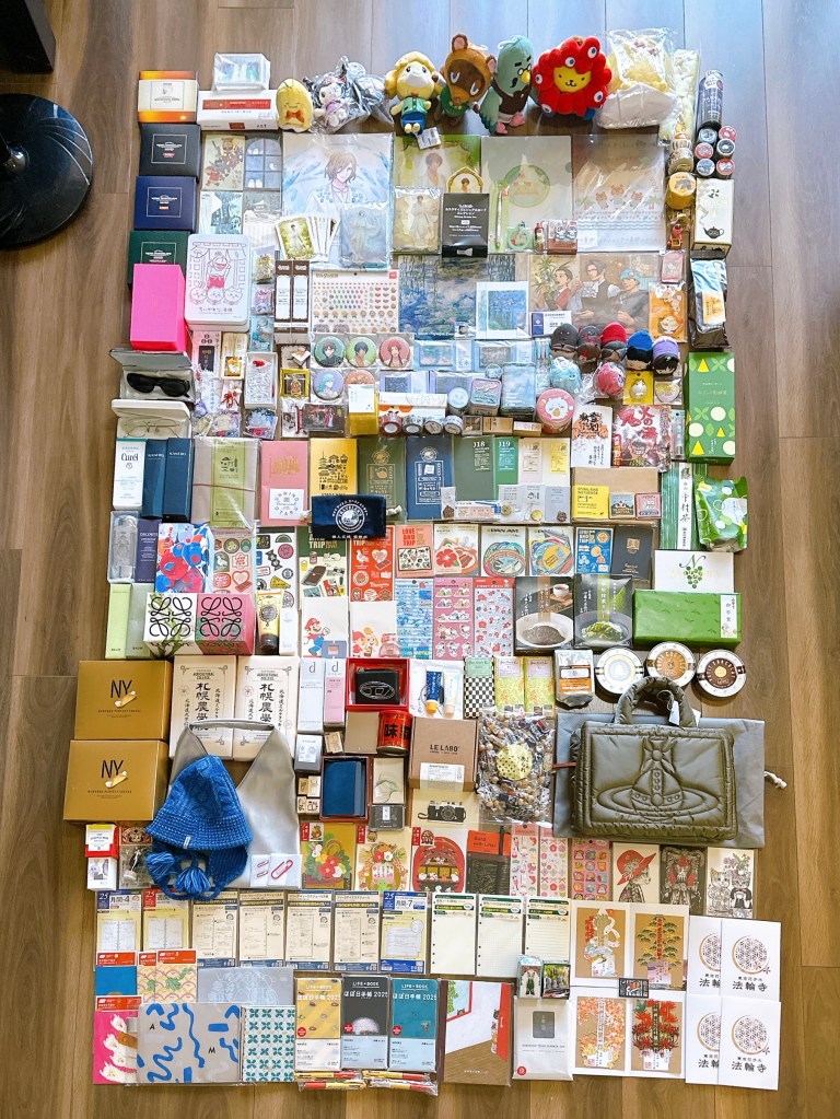 到家第一时间叫了uber外卖接下来三天的伙食和grocery,在日本的时候基本完全没吃到蔬菜,把本不爱吃绿叶菜以外蔬菜的人都逼的买了超市即食的沙拉包,强制性补充营养。家里三周没人积灰,吃完饭吸了地板然后摊开整理行李和这次旅游的收获,给购物战利品拍了个大合照。