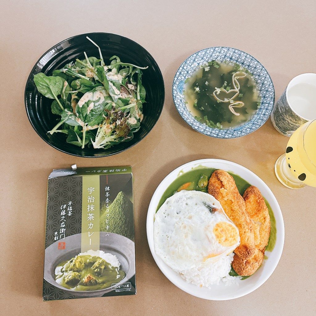 晚餐:hojicha keema curry+chicken tender+miso soup+salad