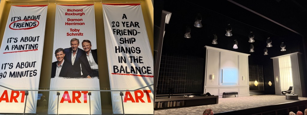 来自C10女士看完后的推荐,还有刚看的Hamlet Camp里的Toby Schmitz,确实好笑好看!It’s about the ART but it’s not really about the ART but they fucking do care about the ART.虽然很绕口令但看完一句话总结的话确实是这么个感想,可以欣赏一个半小时男的互相爹对方并且试图确立自己才是唯一的爹的地位。最好笑的是结局揭开一切我就想爹你后,又因为实在没朋友只能坐一起吃开心果假装要和好。法国作家真的很会观察人与人的关系性笔锋毒辣,我现在看到deconstruction和read Seneca就会先笑三分钟lol 看完后火速剧本查漏补缺,Yvan那段抱怨未婚妻和丈母娘和父亲和继母和母亲的台词真是好长好长翻了好几页,剧院里Toby Schmitz说完全场掌声雷动,真是难为演员了。